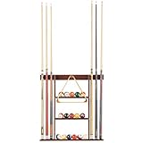 Keep your pool room tidy with the Mizerak P0761 Deluxe Billiard Wall Rack. This solid hardwood rack has an attractive walnut finish and holds up to six cues, a set of 16 billiard balls, and a triangle. Don't wait any longer--turn your messy game room into a stylish, billiard hall with the Mizerak wall rack. Everything needed to assemble this 27 by 28-inch rack is included.