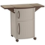 Whether you're tired of keeping the barbecue implements and condiments on the deck railing or just want a prep area that's easy to clean, this outdoor prep station's decorative, durable plastic design looks great on the deck or patio and offers plenty of space to gear up for gourmet grilling. Drop leaf extensions open up to offer a total of 40 inches of cutting and prepping surface. Cabinet space below leaves plenty of room for organizing condiments, napkins and grilling implements and accessories. The unit's 4-inch casters ensure easy transport. The station measures 34 by 20 by 22 (height by width by depth). The upper cabinet stores an included serving tray. Easy snap-together assembly has you up and prepping in minutes. And, the unit's durable decorative top withstands elements for years of outdoor use.