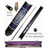 The Purple Matrix designer hardwood cue stick from Trademark Global features a polished black design with purple, blue and gold patterns. Brass joints provide a precision fit, and the tip is removable for easy replacement.