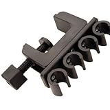 This Joe Porper Portable Cue Holder protects 4 cues from getting knocked over or even worse, "borrowed" with Joe Porper's Portable Cue Racks. Just clamp this handy cue holder onto a table and slip cues into molded plastic cue clips that are sturdy, but soft, with no sharp edges to scratch or mar valuable cues. Clips are attached to a plastic base that rotates on an adjustable, extra large 2" clamp. A large thumb screw makes it easy to install in just seconds. Clips rotate into a vertical position so the cue holder fits right in the storage pouch of a Joe Porper cue case. Rotate the clips back and they click into place to hold your cues.
