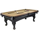 The Minnesota Fats Convington 8 Foot Pool Table. The most recognized name in billiards introduces this new billiard table that has been engineered and constructed for easy installation and durability.& This Convington Pool Table Features: 8' Foot Size Hand-carved wood legs with two tone paint for authentic ball and claw effect Cherry finished wood rails 3/4" Slate-Core (Treated MDF Board) play bed Black drop pockets with diamond embossed shields Professional grade tan wool blend cloth Inlaid round rail sights Overall dimensions: 96" x 53" Play bed dimensions: 88" x 44" Designed to install in less than one hour Matching accessories included - 2 pool cues, pool balls set, chalk and rail brush